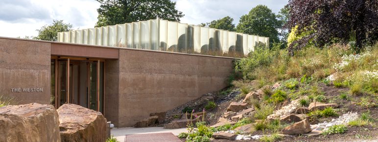 Emerging from the hillside on the eastern edge of YSP, The Weston is a beautiful, light-filled space for art, dining and shopping. We welcomed this award-winning addition to YSP’s indoor spaces in 2019. The building is at one with the historic landscape, complete with its natural interior and wild-flower roof.