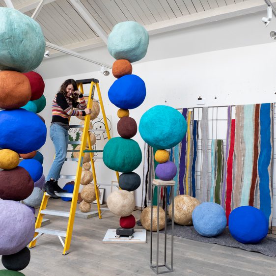 Taken from the artist’s distinctive ‘Stack’ series, the 11.5-foot bronze sculpture by Annie Morris (b. 1978, London, UK) will comprise a tall column of precariously arranged irregular spheres. The colour palette, including vivid blues, deep reds and vibrant greens, will reflect both the busy outdoor environment of the city but also the stunning natural landscape that surrounds Yorkshire, a great source of inspiration to Morris whilst preparing for her first institutional solo show at YSP in 2021.
