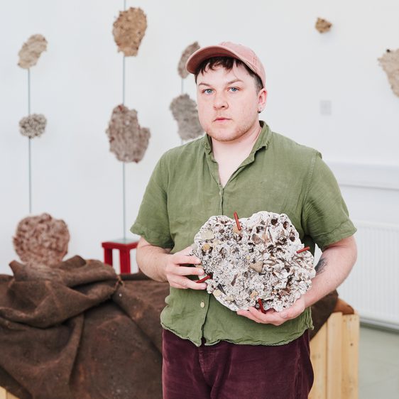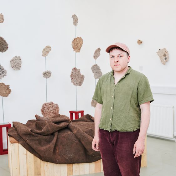 The artist has a deep connection to sound and music, increasingly integrating these elements into his practice. The exhibition title – Dig Me a Grave – takes its name from traditional British folk songs that draw on the themes of love, loss, death, and grief. He is interested in how oral history is passed on through time and the connection between queer history and folk music, both of which historically have little documentation. Accompanying the work is a newly developed soundscape created in collaboration with musician The Silver Field. The interplay between sound and sculpture brings the exhibition to life.