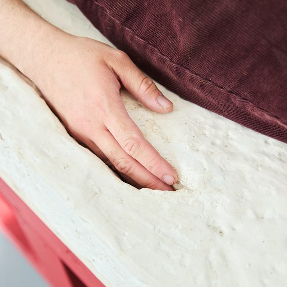 Shown in the meditative setting of YSP’s 18th century Chapel, Dig Me a Grave offers space for personal reflection, solace, and empathy. The exhibition includes sculptural works made in plaster, latex, stone and metal, some of which visitors are invited to physically interact with. Bowler hopes this will lead to a deeper sensory and personal engagement, and encourage allyship and reflection on shared human experiences.