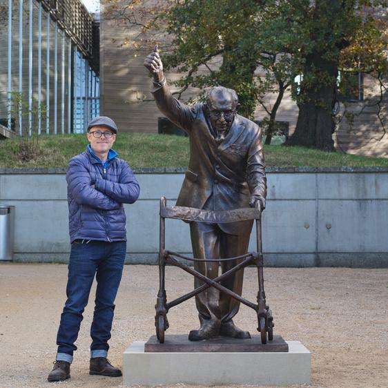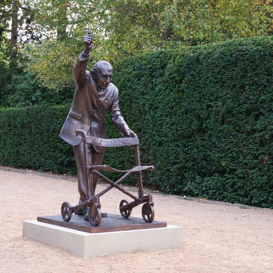 A Way Forward, by sculptor Andrian Melka, pays tribute to Captain Sir Tom Moore’s NHS fundraising achievements and his endeavour to inspire others to find a way forward during the Covid-19 pandemic. The bronze figure is temporarily presented at Yorkshire Sculpture Park before relocation to its longer-term home at Leeds Teaching Hospitals NHS Trust. There it may offer motivation to those attending the Chapel Allerton Hospital, as patients or visitors, through its embodiment of determination and self-belief.