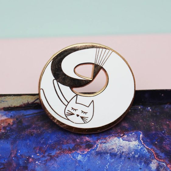 The ‘Catworth’ pin is a feline interpretation of a sculpture by legendary artist, Barbara Hepworth now reimagined as ‘Barbara Catworth.’ A great gift for fans of Hepworth’s The Family of Man series of bronzes, which sit on the beautiful hillside at YSP – the only place in Europe to see all nine sculptures together.