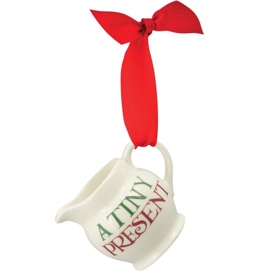 Small in size, big on joy. This charming miniature jug is a cute addition to the Christmas tree, featuring a festive red bow. Made in Stoke-onTrent by Emma Bridgewater using earthenware techniques, featuring the brand’s infamous typography.
