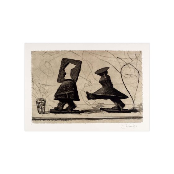 This A5 mantlepiece card has been created exclusively for YSP and is taken from an original series of coffee-lift etchings and drypoints on 100% sisal paper titled Lexicon. The series of original works can be seen in YSP’s headline exhibition William Kentridge: The Pull of Gravity until 19 April 2026.