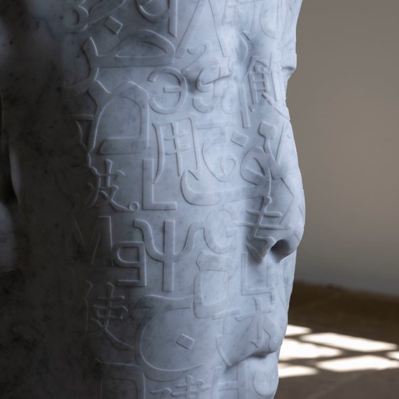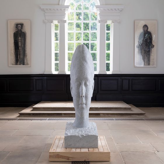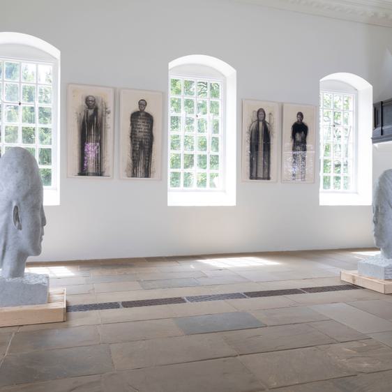 The exhibition continues in the 18th century Chapel where it resonates with its qualities as a spiritual and meditative place. Facing each other in silent communion in the nave are two sublime marble sculptures of girls’ heads with closed eyes that imply optimism for a world community and hope for a shared humanity. Their skin is covered with letters from different world alphabets, a motif that Plensa often uses to suggest the importance of togetherness whilst retaining their own richly unique cultural identities.