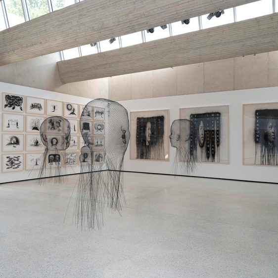 In small places, close to home comprises two complementary installations of drawings that convey the richness of Jaume Plensa’s drawing practice. It highlights the artist’s devotion to a medium that embraces many materials and processes including collage, etched glass, industrial paints and solvents, and extends into three dimensions via wire drawings in space. Like his sculpture, Plensa’s drawing investigates the human condition and dreams of more progressive and united global futures, exploring opposing concepts such as language and silence, darkness and light. The exhibition is presented in collaboration with the Picasso Museum, Antibes, and Galerie Lelong & Co., Paris, and alongside a survey publication of Plensa’s drawings published by Skira.