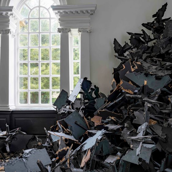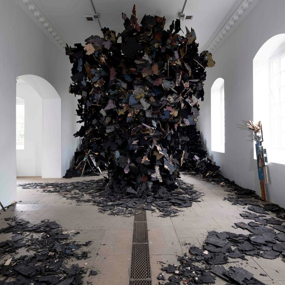 Living and working in Brooklyn, New York, Leonardo Drew’s abstract works, made from an outpouring of chaotic elements, create installations that express immense tension and turbulence. The artist’s new work, Number 360 (2023), commissioned for YSP’s 18th-century Chapel, is a powerful reflection on the weight of collective experience, memory, and the cycles of life and death, decay and regeneration. This resonates within a historic building where many lives have been played out for centuries – unknown to us, yet somehow conveyed by the atmosphere of the space.