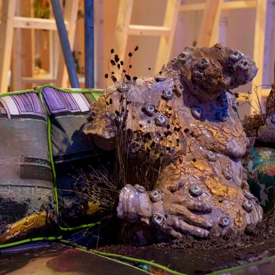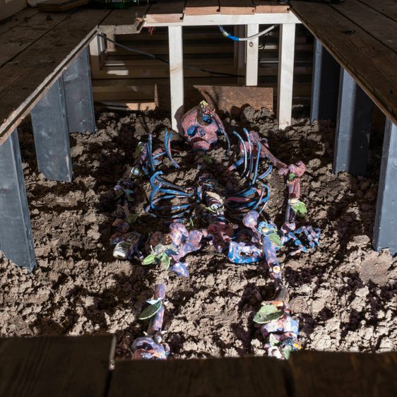 Lindsey Mendick, Where The Bodies Are Buried, installation view at YSP, 2023. Courtesy the artist. Photo © Jonty Wilde, courtesy YSP.