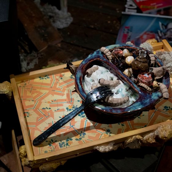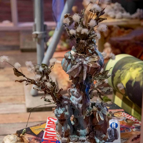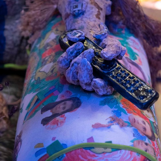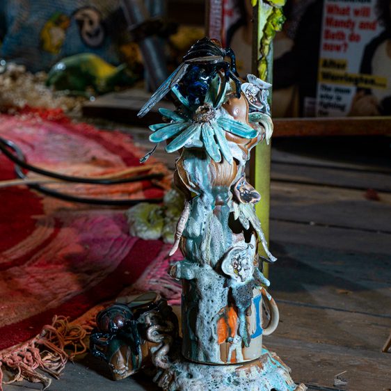 Mendick creates worlds layered with personal anecdotes, timeless myths and popular culture references. She works predominantly with clay – a material that has historically been associated with decoration and the domestic sphere. She acknowledges and subverts these associations, creating intricate works that explore the roles and experiences of women in society. Dark comedy permeates Mendick’s practice, and her confessional approach knowingly combines crushing self-doubt with sensational honesty. Her installations draw on the artist’s own stories and memories, with humorous, grotesque and beautiful results.