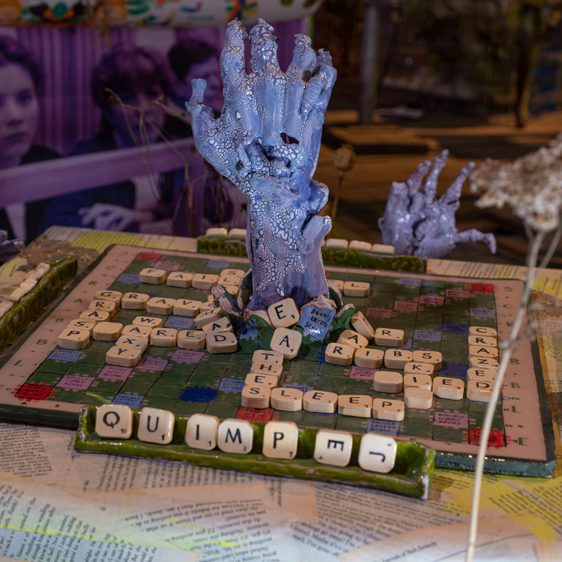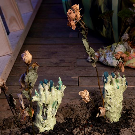 Works will include ceramics and stained glass emerging from the floor as hands, feet and limbs, with a film playing across several screens creating a chorus for simultaneous viewing. Anxiety dreams have long inspired artists and writers, ranging from Eve’s prophetic dream about eating the forbidden fruit in Paradise Lost, to Surrealist paintings and sculpture depicting hauntings and dream-states. The phrase ‘where the bodies are buried’ means to possess information or secrets about a person or organisation. In Mendick’s installation, the secrets are both literal and metaphorical, the buried bodies signifying her fear of being ‘found out’ and misdeeds of the past being unearthed.