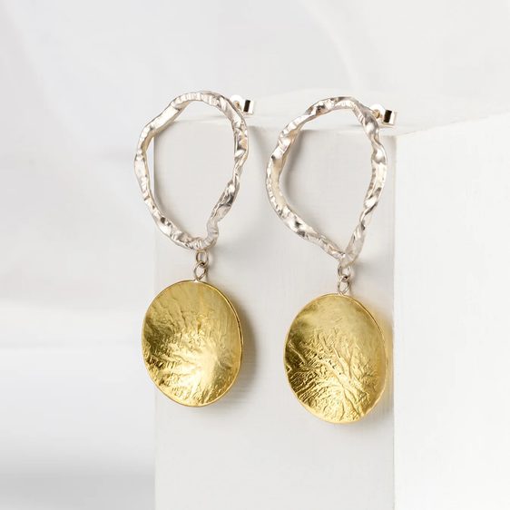 Juliet Barratt Brass Disc and Silver Drop Earrings