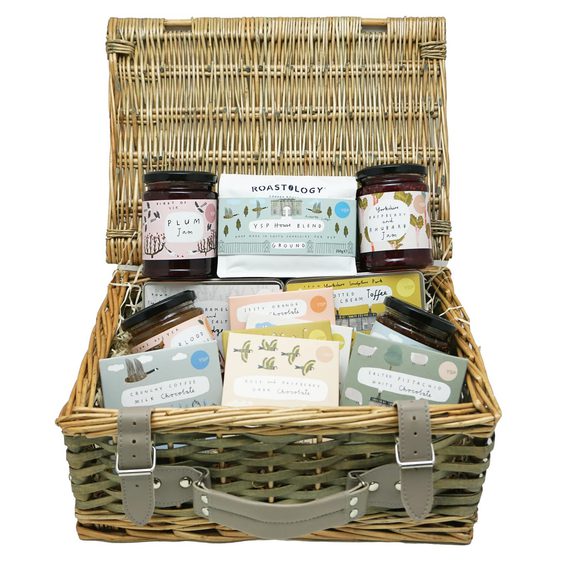 The perfect gift for any foodie, featuring a wide selection of artisan treats produced in Yorkshire with beautiful illustrations by Janine Burrows. Presented in a wicker basket, the hamper includes House Blend Coffee, Blood Orange Marmalade, Plum Jam, Fig Jam, Raspberry and Rhubarb Jam, Caramel and Sea Salt Fudge, Clotted Cream Toffee, and a selection of chocolate.