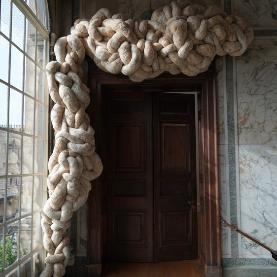 Yorkshire Sculpture Park (YSP) presents Time’s Scythe, a site-responsive installation by British artist Nicola Turner that breathes beguiling new life into the 18th-century Chapel. The powerful sculptural presence made from wool and horsehair begins outdoors on the building’s facade, spilling from the bell tower and entering through an upper window, before cascading over the balcony to inhabit the nave.