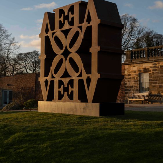 Robert Indiana, Love Is God, 1964, installation view at Yorkshire Sculpture Park, 2022. Photo: © Jonty Wilde, courtesy of Yorkshire Sculpture Park. Artwork: © 2022 Morgan Art Foundation Ltd./ Artists Rights Society (ARS), New York/DACS, London