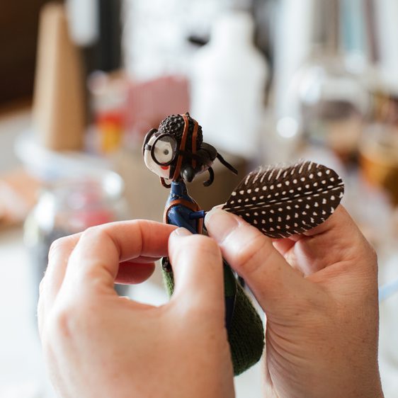 Samantha Bryan, Adding fairy wings in the studio. Photo © Joanne Crawford, courtesy Yorkshire Sculpture Park