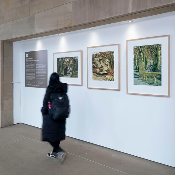Known for his distinctive approach to watercolour, Palmer intricately captures shapes, patterns, sunlight and shadow. His deep links to a specific place align him to a British landscape tradition that includes artists such as Paul Nash, Graham Sutherland and Eric Ravilious. Palmer walks close to his home every day, filling sketchbooks with rapid pen and ink drawings. Narrow lanes, railway bridges, drystone walls, farms, ancient trees, woodland and the moors; each scene is a starting point for his paintings, which use a subtle colour palette to capture the seasons.