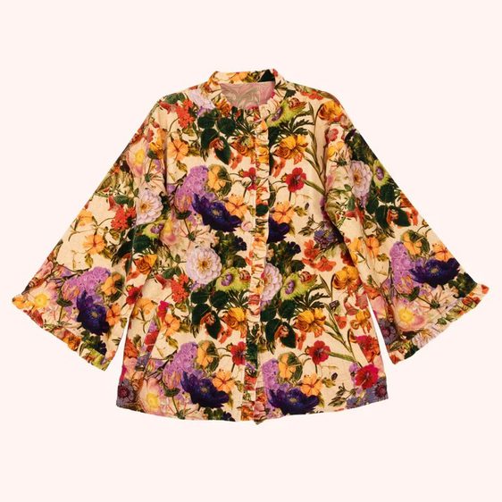 Make a statement with the Posy velvet jacket, combining classic elegance and modern style. Its adaptable length provides both comfort and style, ideal for layering over casual or formal attire, and a perfect addition to a spring wardrobe.