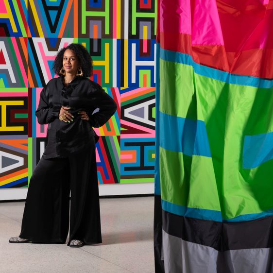 Opened in November 2022, Lakwena Maciver’s exhibition A green and pleasant land (HA-HA), runs through to March 2023 in The Weston Gallery. Lakwena uses her characteristic combination of vibrant colour and text to explore ideas around public speech and public space, using the ha-has in YSP’s landscape as a metaphor for markers of division and control within contemporary society.