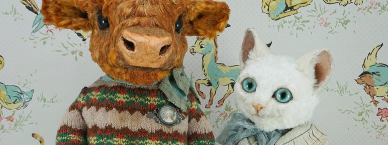 A skilled mould maker, Montgomerie finds inspiration in vintage photographs, old school class photographs, animal photography, vintage textiles and flea markets. Preferring to work in 3D, sculpting with clay is often her way of sketching ideas to begin the creative process. Starting with the face, she forms the expression and personality with layers of muslin and glue to create a hard outer shell before creating the body and clothes from foraged finds.