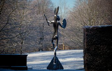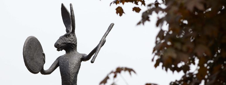 A display on the Formal Terrace celebrated the work of eminent British sculptor Barry Flanagan (1941–2009). Three bronze sculptures – Elephant (1986), Hare and Bell (1988) and Large Left-Handed Drummer (2006) – are fine examples of his style; playful without being whimsical or sentimental.