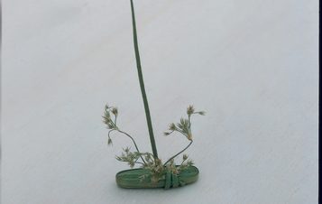 Shown in the exhibition were Boats, formed from a single length of grass spiralled in on itself. They were elemental within the artist’s work and they derive from her childhood culture; self-contained and centred, they conveyed considerable presence far beyond their size. 11 shell and feather works, accompanied by lilting and descriptive texts, were from the Figure series. Shells and feathers have been the subjects of Huws’ watercolours; here she took beautiful ready-mades – feathers from magpies, golden pheasants and mallards – to create physical, poetic works. They outlined her preoccupation with the natural world, language, biology and memory.