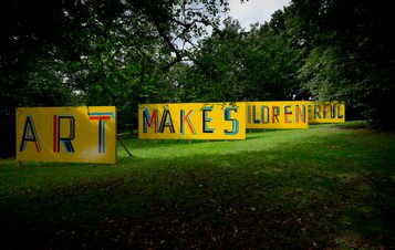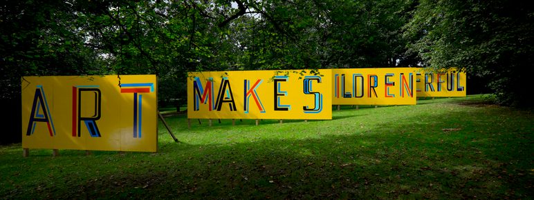 Bob and Roberta Smith’s installation Art for All was developed in response to the holdings of the National Arts Education Archive (NAEA) at YSP, which documents over 100 years of art education. Celebrating the 30th anniversary of the archive, Art For All extended the artist’s provocative advocacy for the role of art in lives and education and invited ideas toward an art curriculum for the digital 21st century.