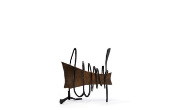 These collages and constructions in steel, card and wire have been created in the evenings, at weekends and in quiet studio time between major commissions. An artist who thinks by making, the compositions in this exhibition are inspired by engineering, architecture, nature and music. A lifetime of fabricating sculpture and wrestling with aesthetics comes together in these complex but elegant constructions.