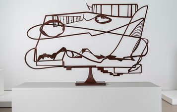 Also in the landscape at YSP, three works from the important Voltri series, that the artist made in Italy during a particularly creative and prolific period working in an abandoned steel factory, displayed the diversity of his approach to found material and to scale. YSP's setting uniquely contextualised Smith’s fusion of industry and nature, in a region recognised both for its towering heritage in steel and renowned for its scenic beauty.