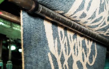 The wool also featured in a unique floor runner produced by Alternative Flooring. Dyed to specific colours from Doran’s chosen palette, the yarn was woven on Axminster narrow-width looms to create a luxurious runner, bringing together traditional techniques and contemporary design, and providing a plush centrepiece to the exhibit.