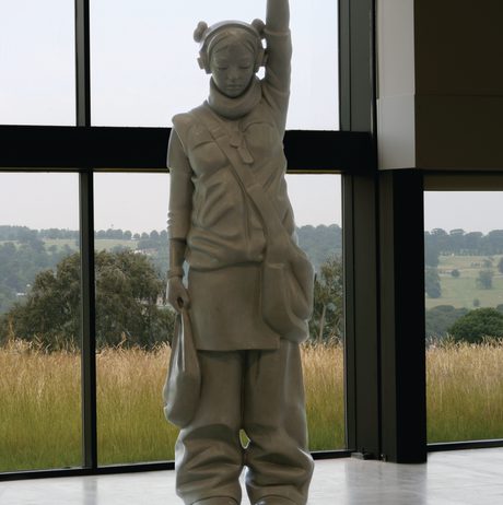 Featuring works that recall injection-moulded toys, animated cartoons and fashion, his figures, animals and objects from contemporary life were presented as anti-monuments with a still and seamless clarity. While appearing to be mass-produced, they are painstakingly made using traditional sculptural methods.