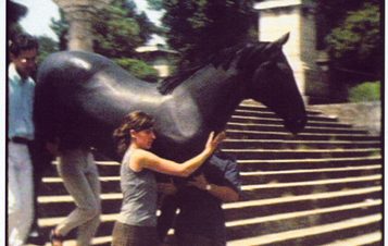 Fresh Air was one example of the diverse media Coutts uses to make models of the social: groups, gatherings, habitats, zones, and elements in play. The recurring theme in her work is communal existence and collective activity. She is interested in the way in which things mill and collide, respond back and forth, disintegrate, or move in perfect coordination. Sometimes the focus is the life of the city, sometimes the lives of animals. Other works in the exhibition drew upon these themes and included films showing the behaviour of a group of pet hamsters fitfully playing in exercise balls, and a fibreglass horse borne through the streets of Rome. There was also a display of exquisitely painted egg-shell fragments meticulously decorated after Etruscan pots, referring to a civic past.