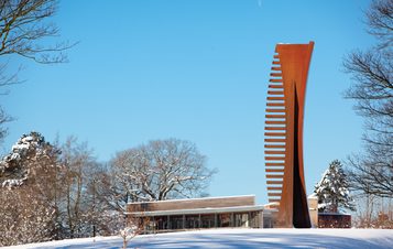 Sculptures included painted aluminium wall works made in the 1970s and 1980s, large free-standing bronzes from the 1980s and 1990s, alongside Hall’s more recent, highly precise wooden and corten steel constructions. The outdoor spaces featured Crossing (Horizontal) and Crossing (Vertical), two major corten steel sculptures from 2006.