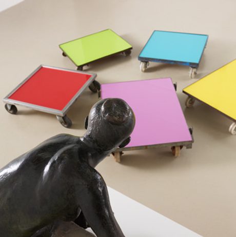 As an artist, Gander is known for avoiding a recognisable style, preferring to work with many different materials to explore new approaches to art. For Night in the Museum, Gander positioned a range of figurative sculptures to gaze at artworks featuring the colour blue – a colour which is important in Gander’s work, and which for him represents the abstract ideas often found in modern and contemporary art. The figures contemplated a wide selection of post-war British art encompassing different styles and periods. In presenting works in this unusual way, Gander disrupted the role of the curator as a mediator between art and the public, inviting us to look beyond traditional themes and histories.