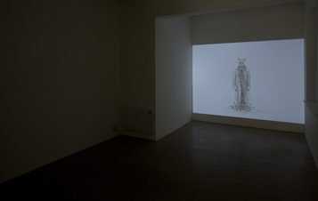 New works on paper offered curious situations: dogs’ new tricks sees a faceless bride led to the altar by, and perhaps towards, a pack of labradors. Elsewhere Goodyear’s work paralleled various mythologies, including manifestations of the ‘trickster’ who appears in poorly constructed disguises and waits to be discovered. New animations showed devils locked in an endless dance that is more than tinged with menace. Sinister sound within them drew the viewer through the gallery and into Goodyear’s world, where fascination and bewilderment at the conduct of these characters takes over.