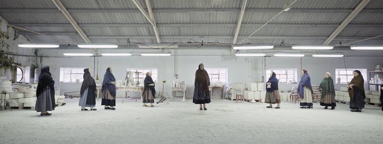 YSP exclusively broadcast a new commission by the Portuguese artist RitaGT online to mark International Women’s Day on 8 March. The artist choreographed a choral and movement performance for 25 women – singers from the folk choral Cantadeiras do Vale do Neiva and the dancers Piny and Isa Santos – set in an installation she created in Fábrica de Louça, an abandoned ceramics factory in her hometown of Viano do Castelo, in the north of Portugal.