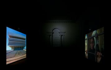 In Soliloquy Neshat uses architecture as a cultural reference, as she walks through two distinct landscapes; one in Mardin, Turkey and the other in Albany, New York. The two films make visual the state of longing and dislocation experienced as a result of being born in one country, living in another and belonging to neither. Using dual screen projections facing one another, the viewer is physically immersed in hauntingly beautiful imagery and evocative sound. Neshat has said that Soliloquy ‘aims to offer a glimpse into the experience of a divided self in need of repair’.