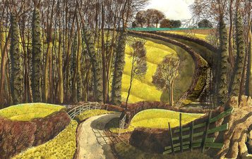 Known for his distinctive approach to watercolour, Palmer intricately captures shapes, patterns, sunlight and shadow. His deep links to a specific place align him to a British landscape tradition that includes artists such as Paul Nash, Graham Sutherland and Eric Ravilious. Palmer walks close to his home every day, filling sketchbooks with rapid pen and ink drawings. Narrow lanes, railway bridges, drystone walls, farms, ancient trees, woodland and the moors; each scene is a starting point for his paintings, which use a subtle colour palette to capture the seasons.