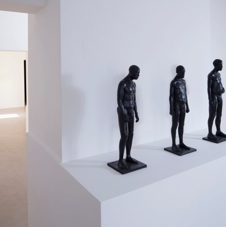 Bronze statues often represent and commemorate people of significance, predominantly white men. Price’s subjects are anonymous, usually composite, portraits of men in the street as well as images from magazines and newspapers. Through casting them in bronze and placing the figures on plinths, Price knowingly raises their status and subverts the tradition of sculpture and, in the process, the hierarchies of power it reflects.