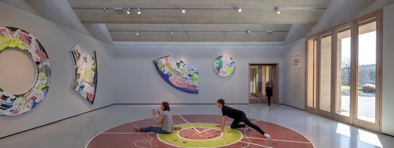 Informed by their long enquiry into game theory, including their research into the Don Pavey Collection, held in the National Arts Education Archive at YSP, the central installation Farmer is a Wrestler was an interactive challenge that invites participants as players to try out seven traditional wrestling manoeuvres, echoing the game of ‘Twister’. Participants landed on numbers, rather than colours, where each represented a trial faced by farmers in India, and across the world, such as global warming, suicide, agrarian distress, and drought. The participant was encouraged to interact with the space to better understand and comprehend the hardship of this ongoing situation. The exhibition demonstrated the duality of the figure of the farmer as a wrestler, staging strategies for survival against a complex set of challenges. The work explored not only their psyche but the body and human form as a site for endurance and strength.