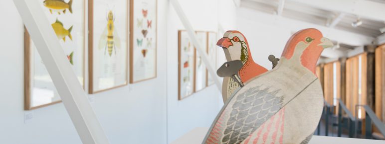 The Wild Collection highlighted the joy of getting out into nature, studying it, and collecting specimens to keep, enjoy and preserve. The Garden Gallery exhibition transported visitors to a biology classroom, or a naturalist’s study, with works such as old school charts, matchboxes containing foraged finds, collector’s cards and stamps.