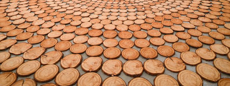 71 oak slabs were charred and oiled on site before installing, and were placed to work with the lie of the land. The steps are completed by 30 tonnes of coal surrounding the steps, creating a stunning installation that will erode and change over time. - Art Outdoors
