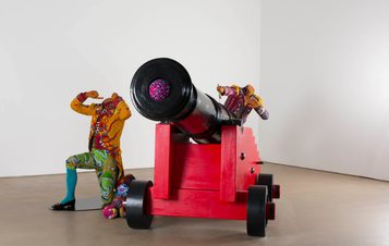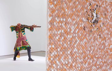 Born in London in 1962, Shonibare moved to Nigeria when he was three, later returning to the UK to study art. His work shrewdly explores and confounds stereotypes of race and class, engaging with ideas around identity and authenticity as well as dislocation, multiculturalism, global food production and revolution, often addressed through playful conceits. This approach is part of his determination to avoid being categorised: Shonibare accepted an MBE in 2004, adopting the title into his working name, saying, “it was the last thing you would have expected of me”.